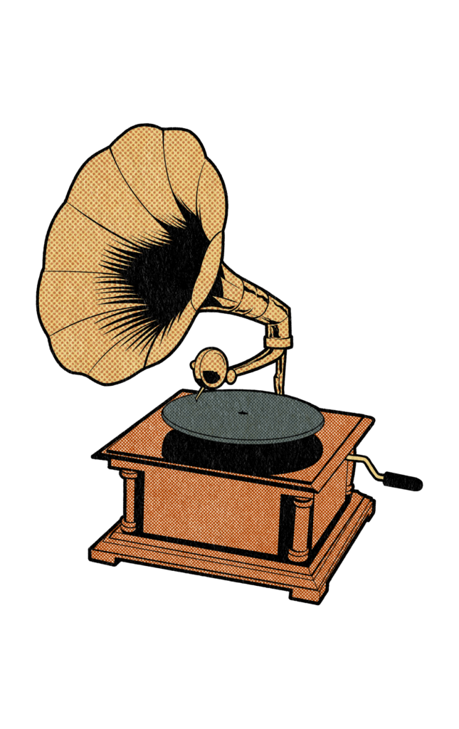 Auch der moderne Plattenspieler geht auf Edisons Phonographen zurück – allerdings mit einem großen Unterschied: Der Phonograph war auf dieses große unpraktische Horn angewiesen, um die Tonwellen während der Wiedergabe zu verstärken. Damals geschah die gesamte Wiedergabe also mechanisch.